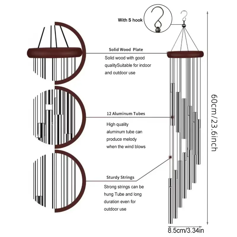 🔔 12 finely tuned aluminum tubes for rich, deep melodies