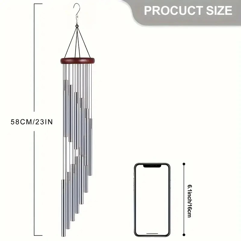 Enhance your outdoor sanctuary with the New 12-Tube Aluminum Wind Chimes, beautifully designed to deliver deep, soothing tones that resonate with every breeze. Made from premium waterproof aluminum, this wind chime is built to withstand the elements while adding a serene, musical ambiance to any outdoor or indoor setting.